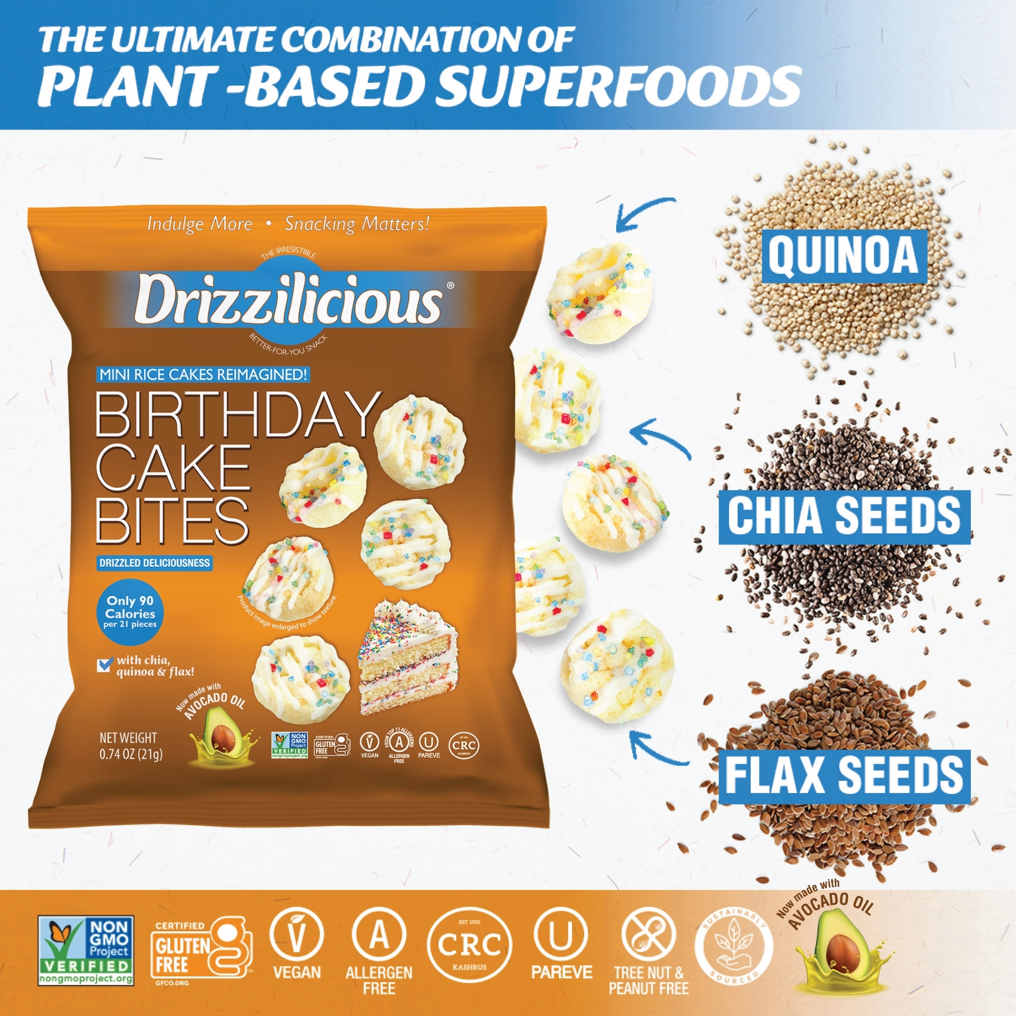 Our Drizzilicious Birthday Cake bites are mini rice cakes reimagined!