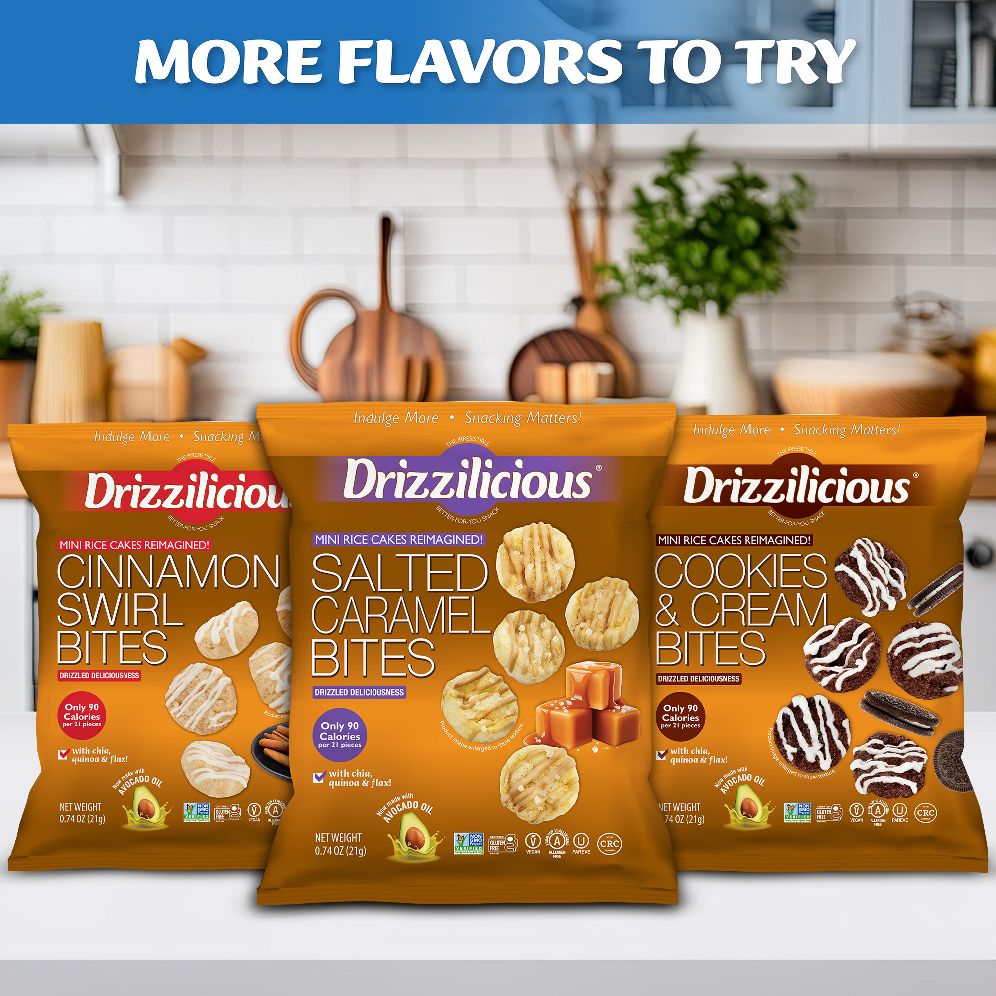 All this for only 90 calories per 21 pieces!? Drizzilicious is a smart little snack the whole family can feel great about!