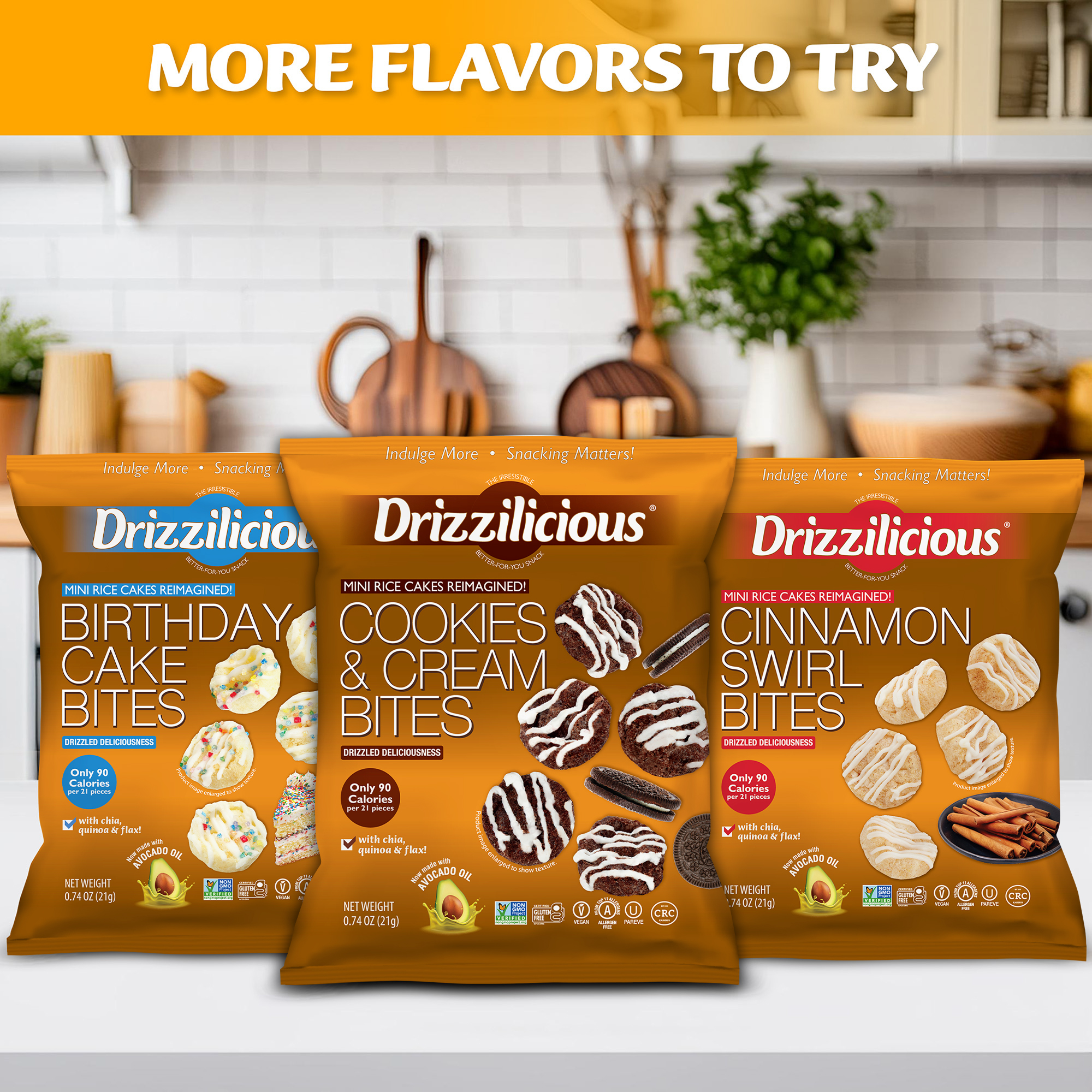 All this for only 90 calories per 21 pieces!? Drizzilicious is a smart little snack the whole family can feel great about!